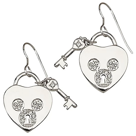 Let Mickey unlock her heart with these romantic Mickey Mouse Earrings by world-renowned Arribas Brothers. Heart-shaped silvertone pendants feature our famed mouse icon set with sparkling Swarovski pavé crystals, plus tiny key charms.