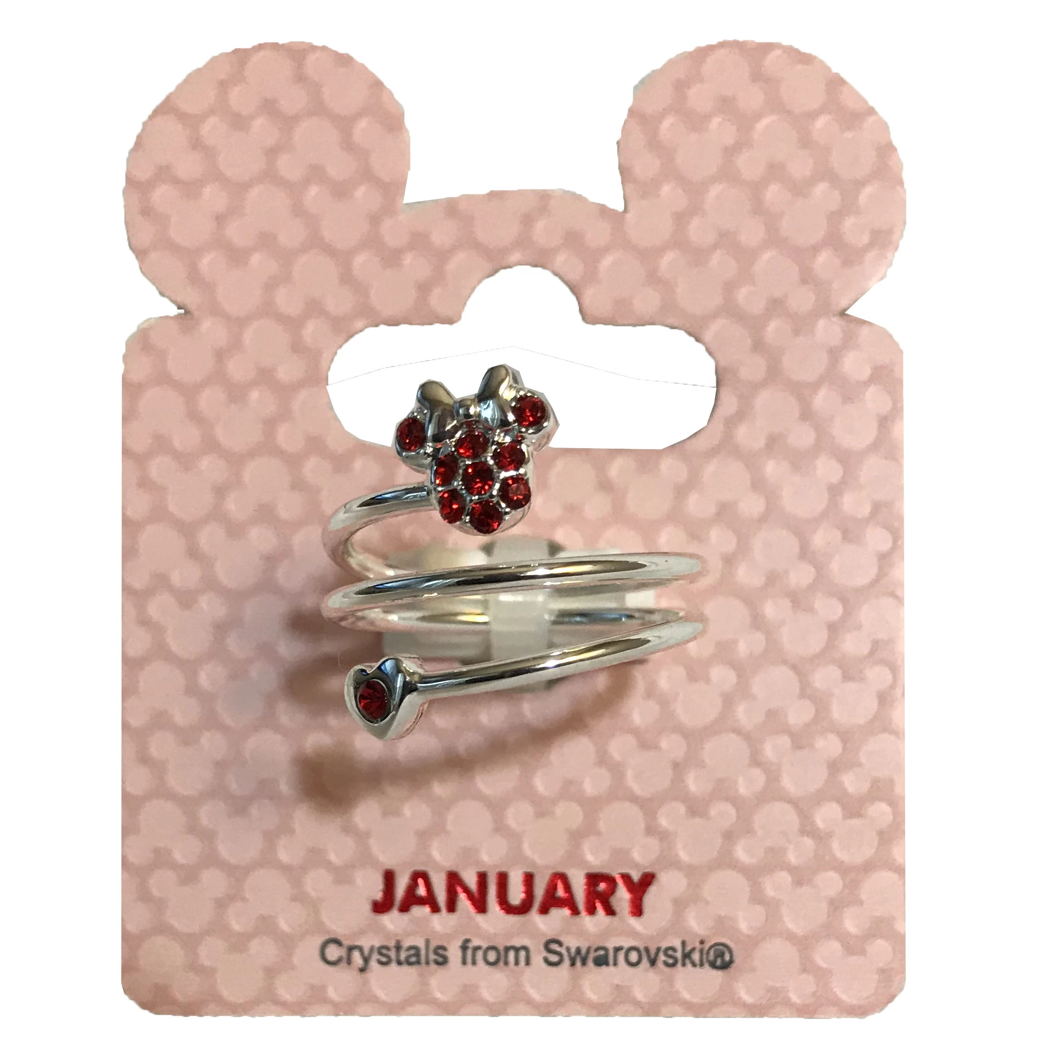 - Spring style ring has Minnie Mouse head icon and Heart with birthstone