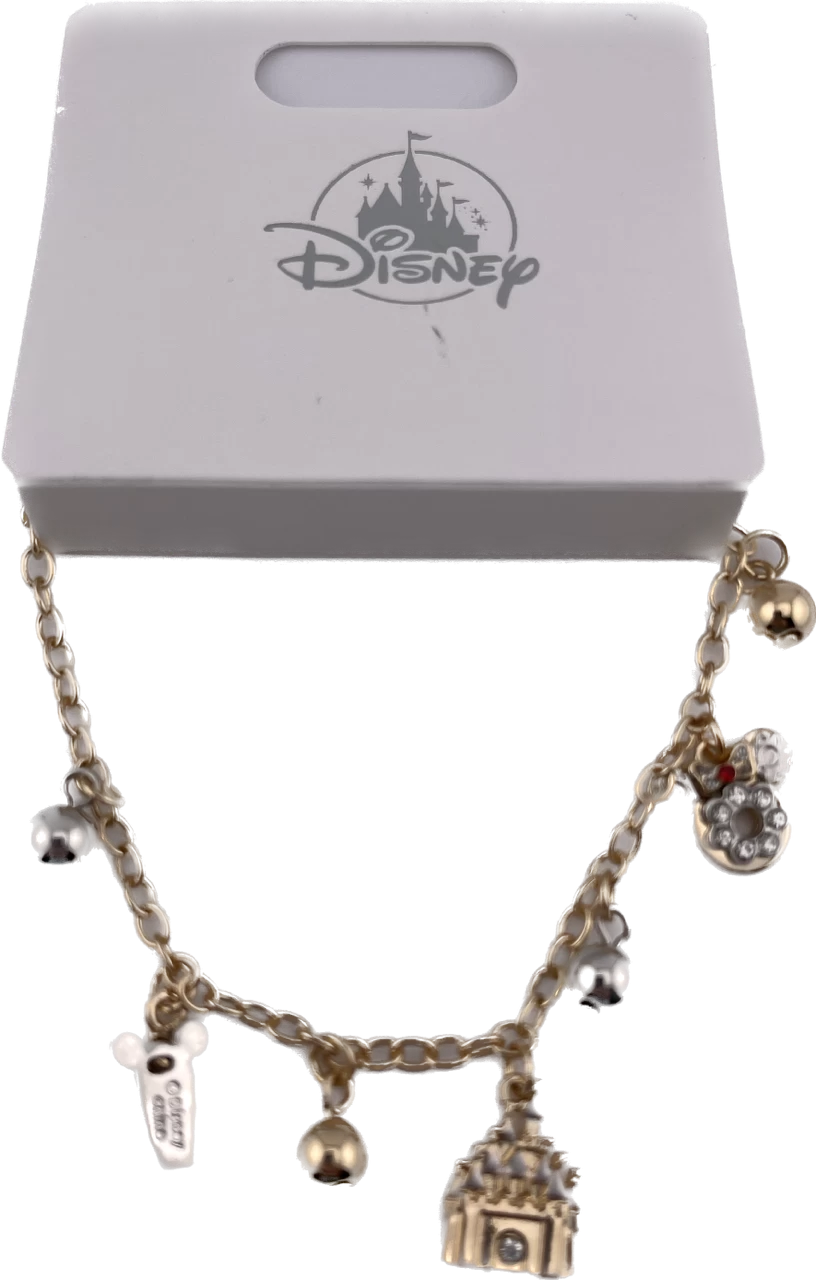 You’ll show excellent taste when wearing this bracelet featuring three charms, with a Minnie Mouse Donut, a Mickey Mouse beverage, and Cinderella Castle pendants.