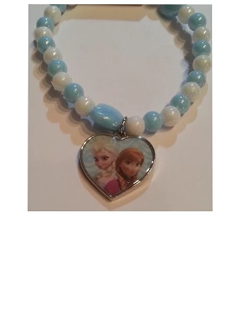 Dual heroines adorn shimmering heart charms on a beaded bracelet with sparkling Elsa and Anna heart pendant