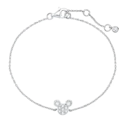 You can take Mickey’s sparkle wherever you go with this Mickey Mouse Icon Bracelet by CRISLU. Adorned with handset flawless cubic zirconia, this stylish jewelry is crafted from sterling silver and available in platinum or rose gold finish.