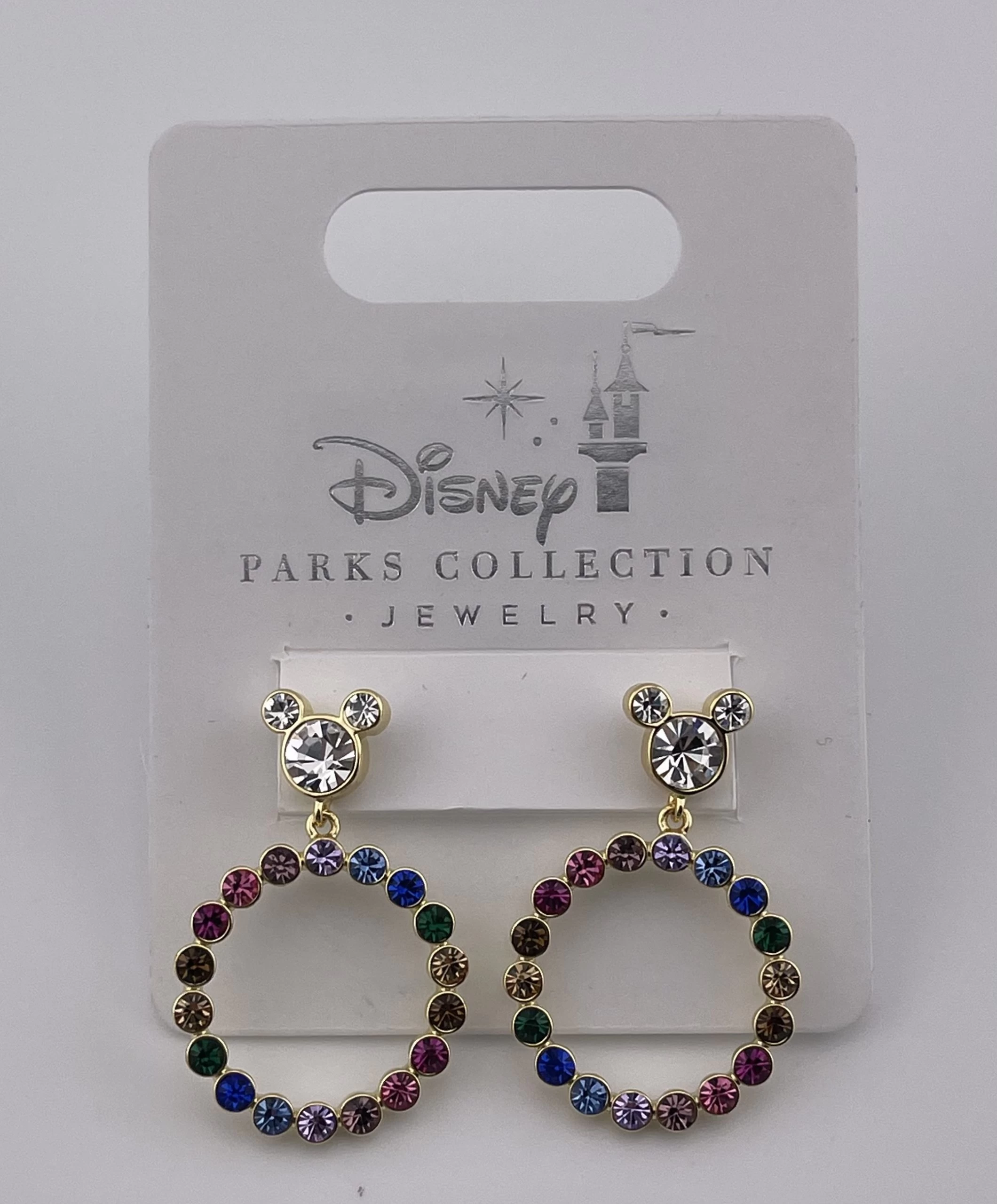 Dazzle up with these gorgeous Mickey Mouse Hoop earrings surrounded in a rainbow of color.