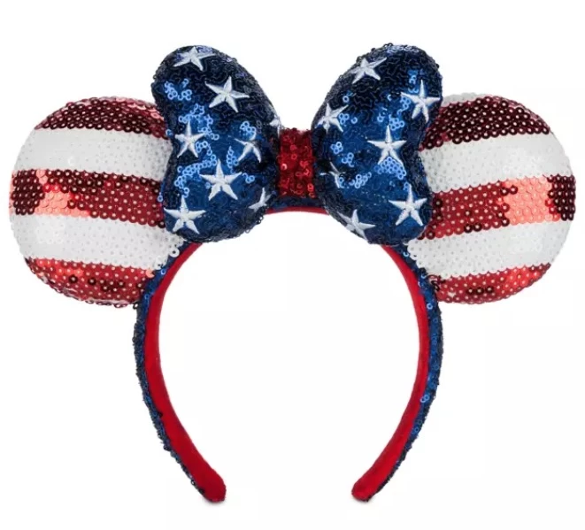 Three cheers for the red, white, and blue on this sequined Minnie Mouse ear headband with bow. It’s a stirring keepsake to honor America for years to come!