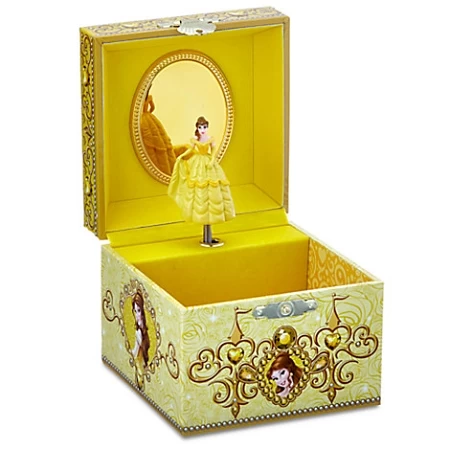 Send the Disney Princess into a spin with this decorative musical jewelry box. Turn the key to hear the title song from Beauty and the Beast as Belle pirouettes in front of the mirror which will reflect your sparkling contents.