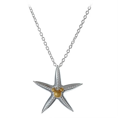 pendant with golden Mickey icon center on a fine silver chain necklace