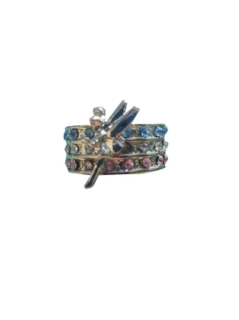 This attractive silver band alternates 3 bands of colorful Rhinestones with Tinker Bell on the front to give you a sprinkle of pixie dust to brighten your day. Elegant and understated, it’s right for every occasion.
