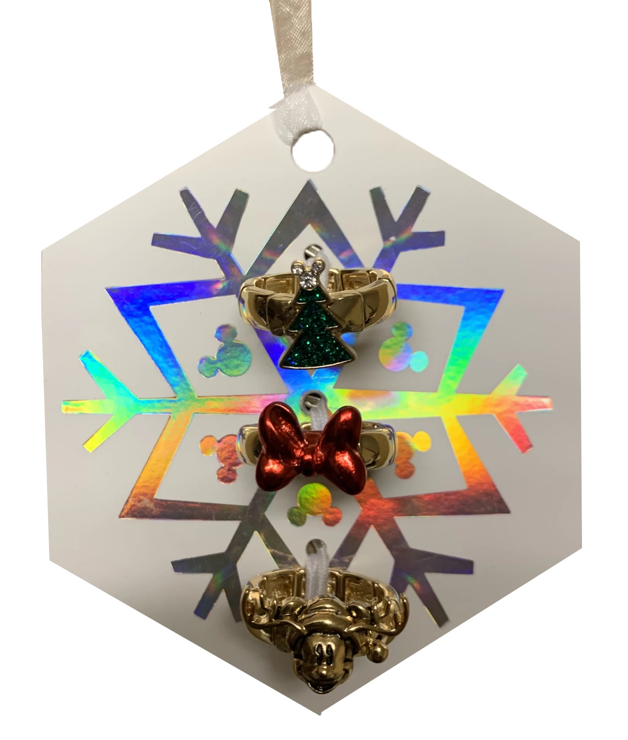Enjoy these set of 3 Festive Stretch rings this Holiday. Includes a Christmas Tree with Mickey, Minnie’s Bow, and Mickey Reindeer. Makes a Great Gift as well.