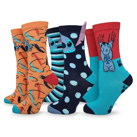- One pair with patterned design and Stitch biting into the inside ankle