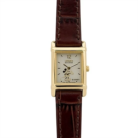 You’ll be light on time with our Citizen® Eco-Drive® Brown Leather Mickey Mouse Watch for Women featuring Citizen®’s proprietary Eco-Drive® Technology. Converting any source of light into useable energy, when fully charged this elegant Mickey watch will continue running for six months (even in total darkness).